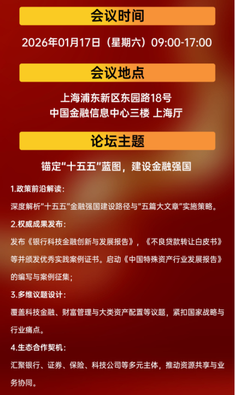 會議預告 | "十五五"金融高質量發(fā)展大會暨2026浦江金融與發(fā)展論壇即將召開(可報名)